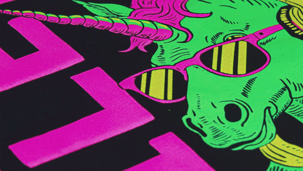 Fluorescent ink features vibrant colors that become even more vivid under blacklight. It's perfect for creating attention-grabbing designs for events, parties, or themed apparel.